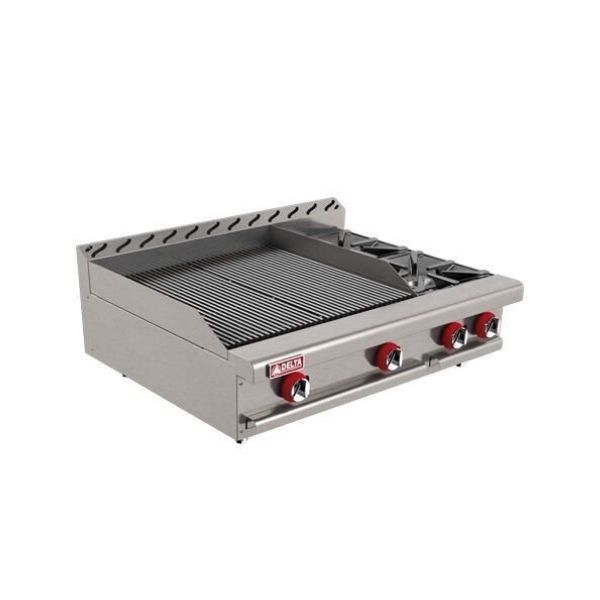 Lambrn bajo.nParrilla superior de fundicin.nMarco perimetral anti-salpicaduras.nParrillas superiores individuales de fundicin desmontables.nQuemadores tipo ÇHÈ de acero inoxidable.nQuemadores abiertos de fundicin.nCharola recolectora desmontable.nPanel de controles desmontable.nPerillas ergonmicas.nPatas con niveladores.nnnEspecificaciones:nnQuemadores: 2 tipo ÇHÈ y 2 abiertos.nConsumo: 134,000 BTU.nMedidas: 0.92_0.76_0.26nPeso: 94 Kg.